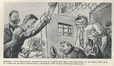 Первым актом Временного правительства по Туркестану было постановление от 18 марта 1917 года об амнистии палачам киргизского восстания 1916 года. Все русские погромщики, повинные в убийствах и издевательствах над коренным населением, были освобождены от тюремного заключения. Постановление Временного правительства вызвало негодование местного населения.