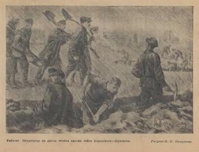 На фронт обороны поехал сам с рабочими боевой дружины, в числе 200 человек, где находился пять суток. Неоднократно посылались на позиции слесари для ремонта орудий. На окопы было послано рабочих-путиловцев более 500 человек и 50 плотников; те и другие — со всеми нужными для работ орудиями.